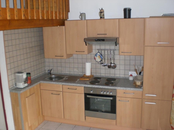 ... der einladenden Eßgruppe mit Eckbank, Holztisch und Stühlen gegenüberliegt.
