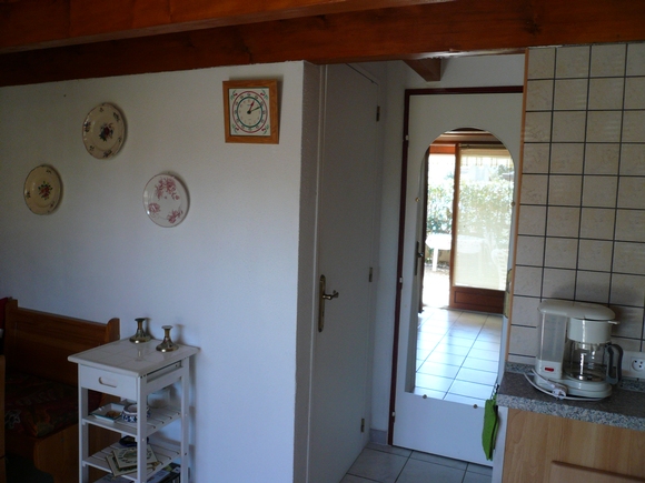 Ein kleiner Flur zwischen Küche und Eßbereich führt zu Bad, separater Toilette und Schlafzimmer.
