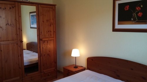 Dem zweiten Schlafzimmer, mit Schrank und zwei Einzelbetten eingerichtet, ist ein kleiner, sonniger Balkon vorgebaut.