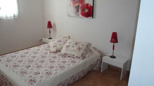 Das zweite Schlafzimmer im Obergeschoss, ebenfalls mit Klimaanlage ausgestattet, nimmt die südländische Atmosphäre des Untergeschosses in symphatischer Weise auf.